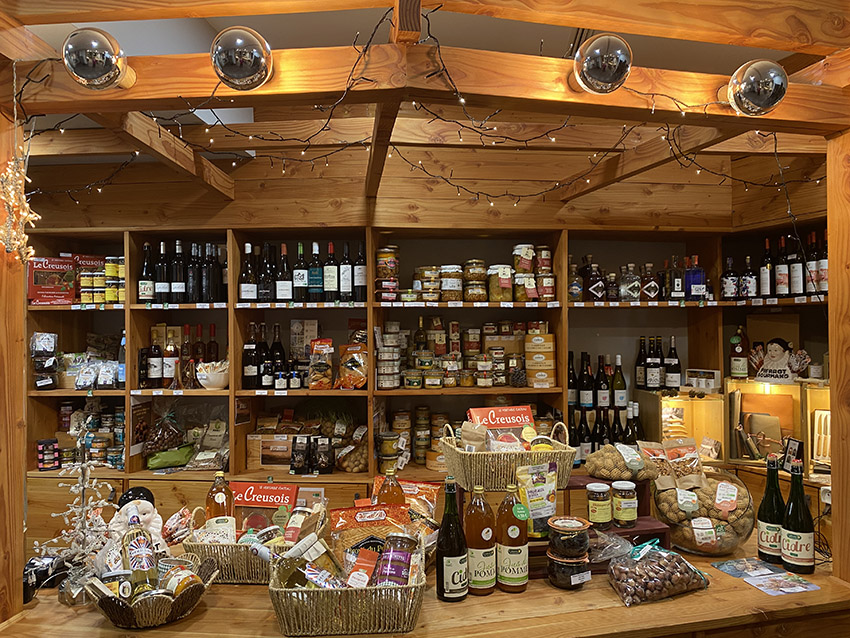 Tous les produits emblématiques de la région (et de la saison) sont là : vins* et spiritueux*, foie gras et préparations de canard ou d'oie, miels, noix, noisettes, pruneaux, chataignes, myrtilles, gâteaux et jus de pommes... mais aussi maroquinerie, couteaux, etc.